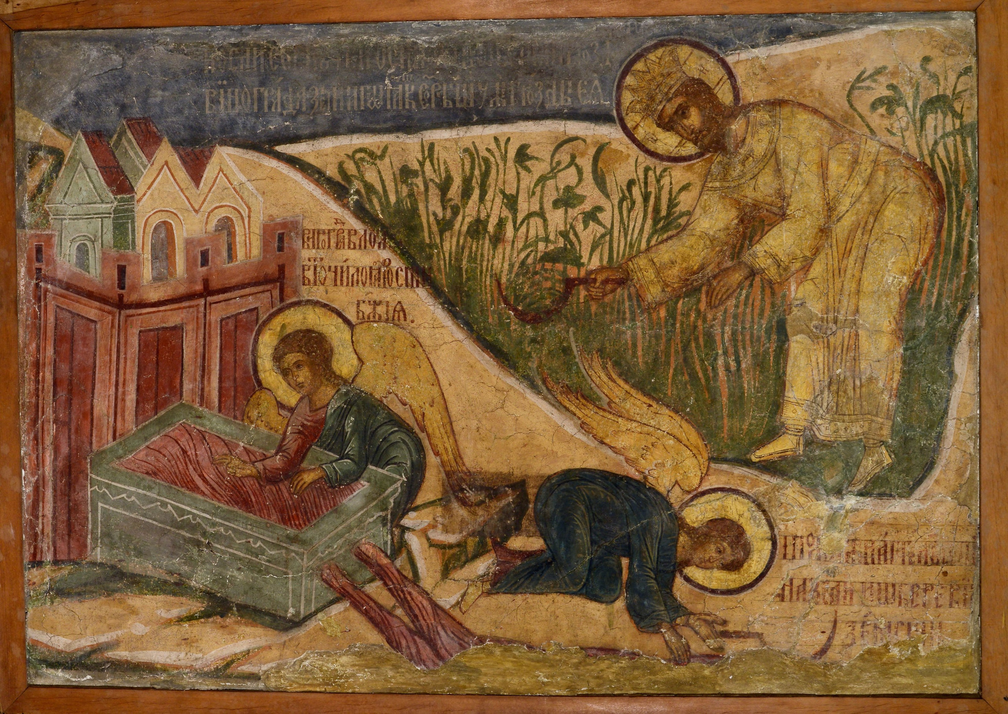 Троицкий Макарьев монастырь был основан преподобным Макарием Калязинским в 1434 году и был одним из самых богатых и почитаемых в России. Монастырь посещали Иван Грозный, Борис Годунов, Алексей Михайлович. Фрески Троицкого собора, представленные на выставке, были созданы царскими иконописцами, известными по лучшим живописным циклам первой половины XVII века в Московском Кремле и Звенигороде.