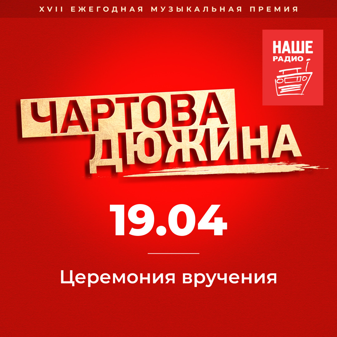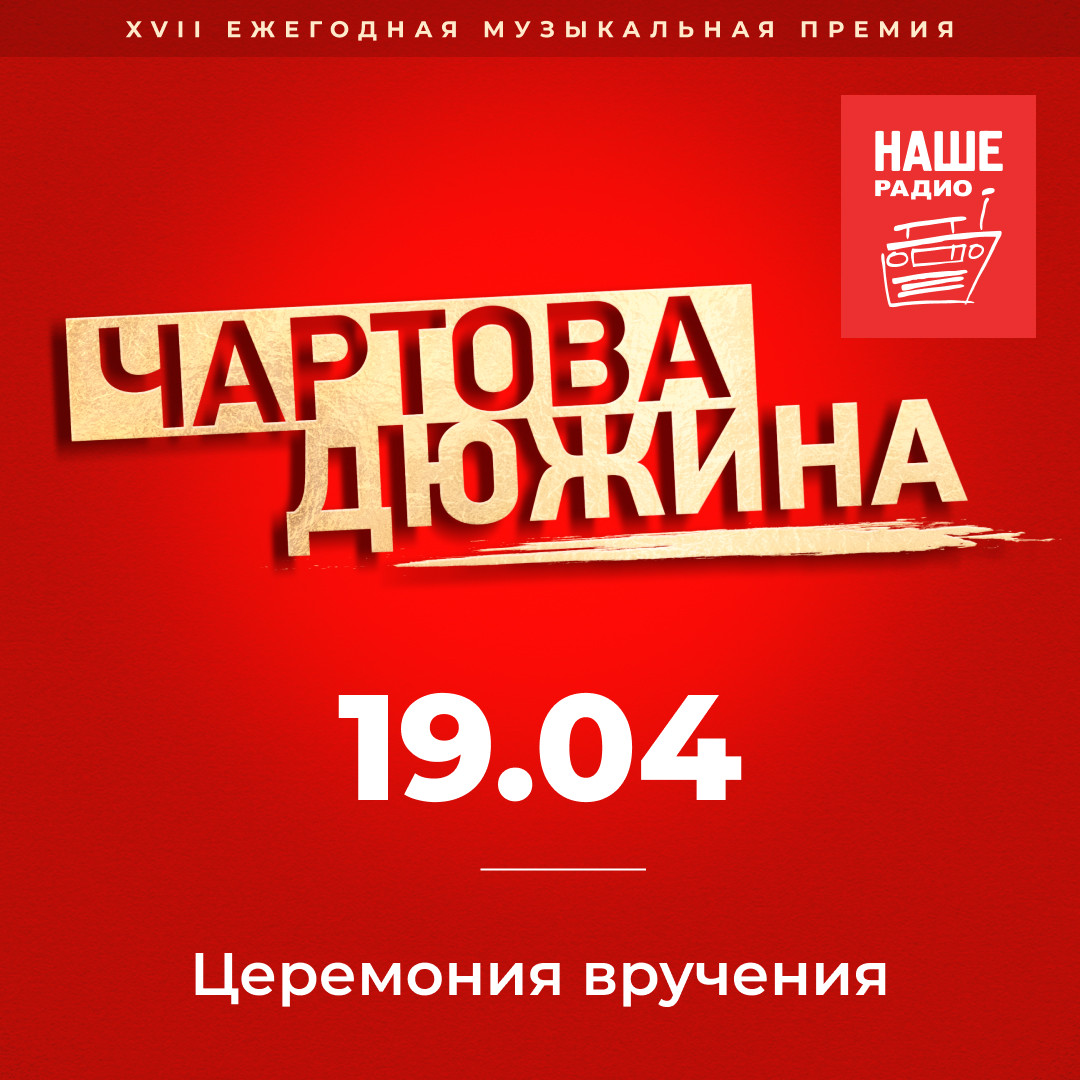 Церемония вручения премии «Чартова Дюжина», запланированная на 21 апреля в московском концертном зале Crocus City Hall, отменена. Объявление лауреатов пройдет 19 апреля в эфире НАШЕго Радио в специальном выпуске хит-парада «Чартова Дюжина».