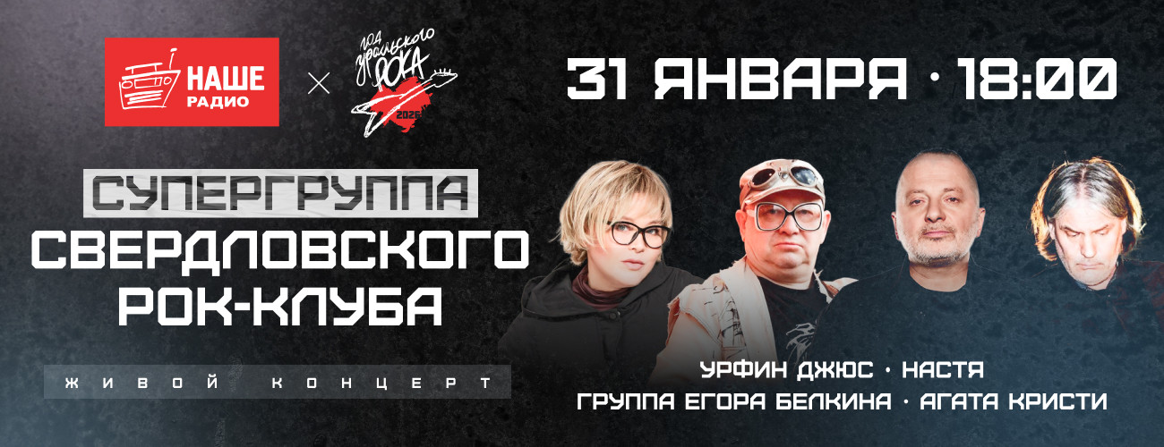 31 января НАШЕ Радио соберет на одной виртуальной сцене музыкантов культовых групп «Урфин Джюс», «Настя», «Группа Егора Белкина» и «Агата Кристи». Одно выступление — четыре легенды уральского рока.